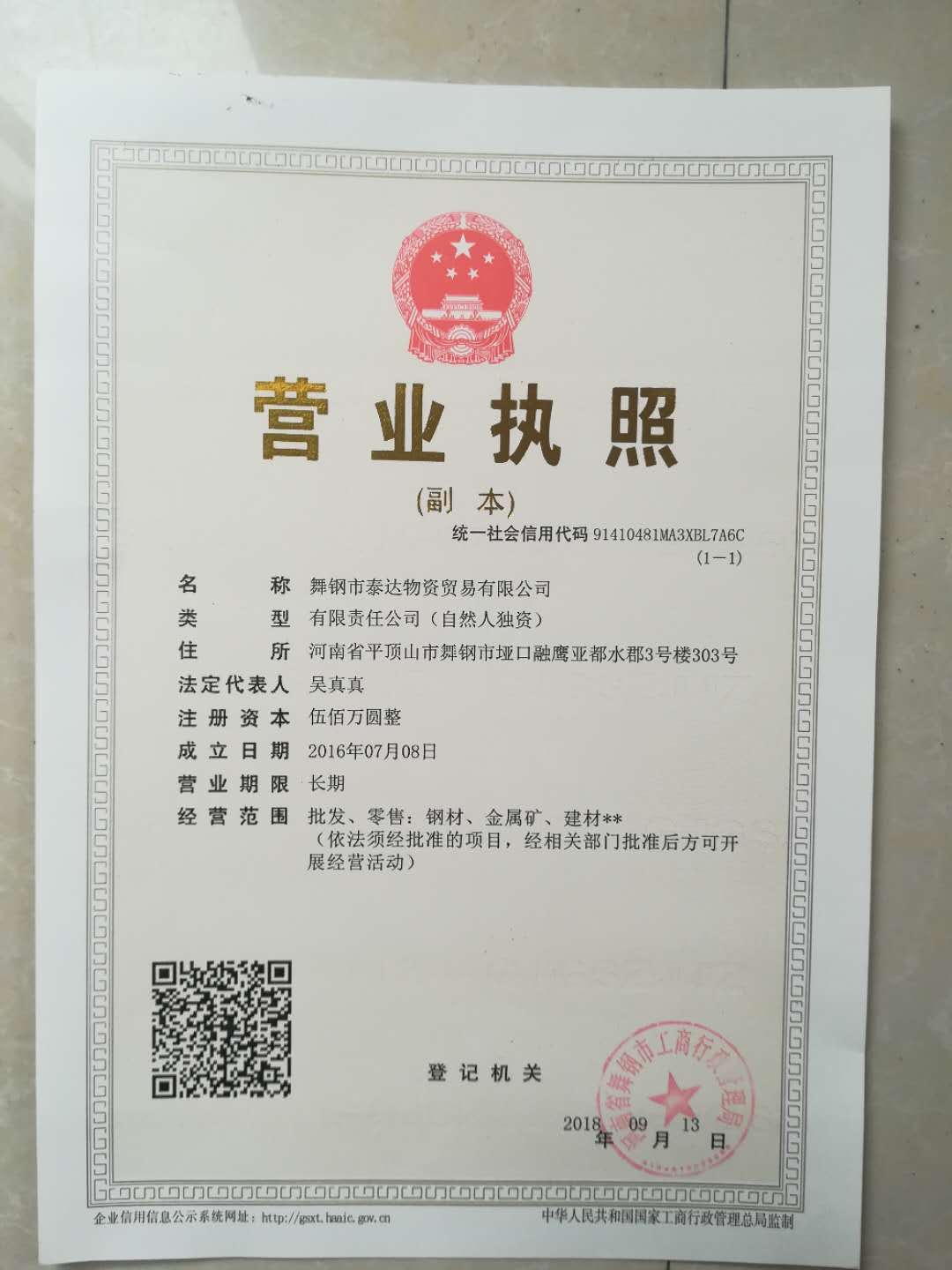 舞钢市泰达物资贸易有限公司